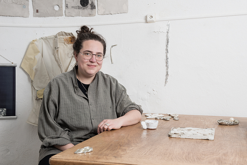 De Léonie Vanay, j’ai pu voir le travail par petites touches fort intéressantes au fil d’expositions principalement collectives: Standard/deluxe et Circuit à Lausanne, le CACY à Yverdon, le MCBA, Seins à Dessein à l’Espace Arlaud, notamment… Mais ce n’est que tout récemment que je suis allée la rencontrer dans son atelier lausannois et que j’ai pu mettre derrière ses pièces un visage et une personnalité discrète mais bien trempée qui mène un travail tout en finesse.